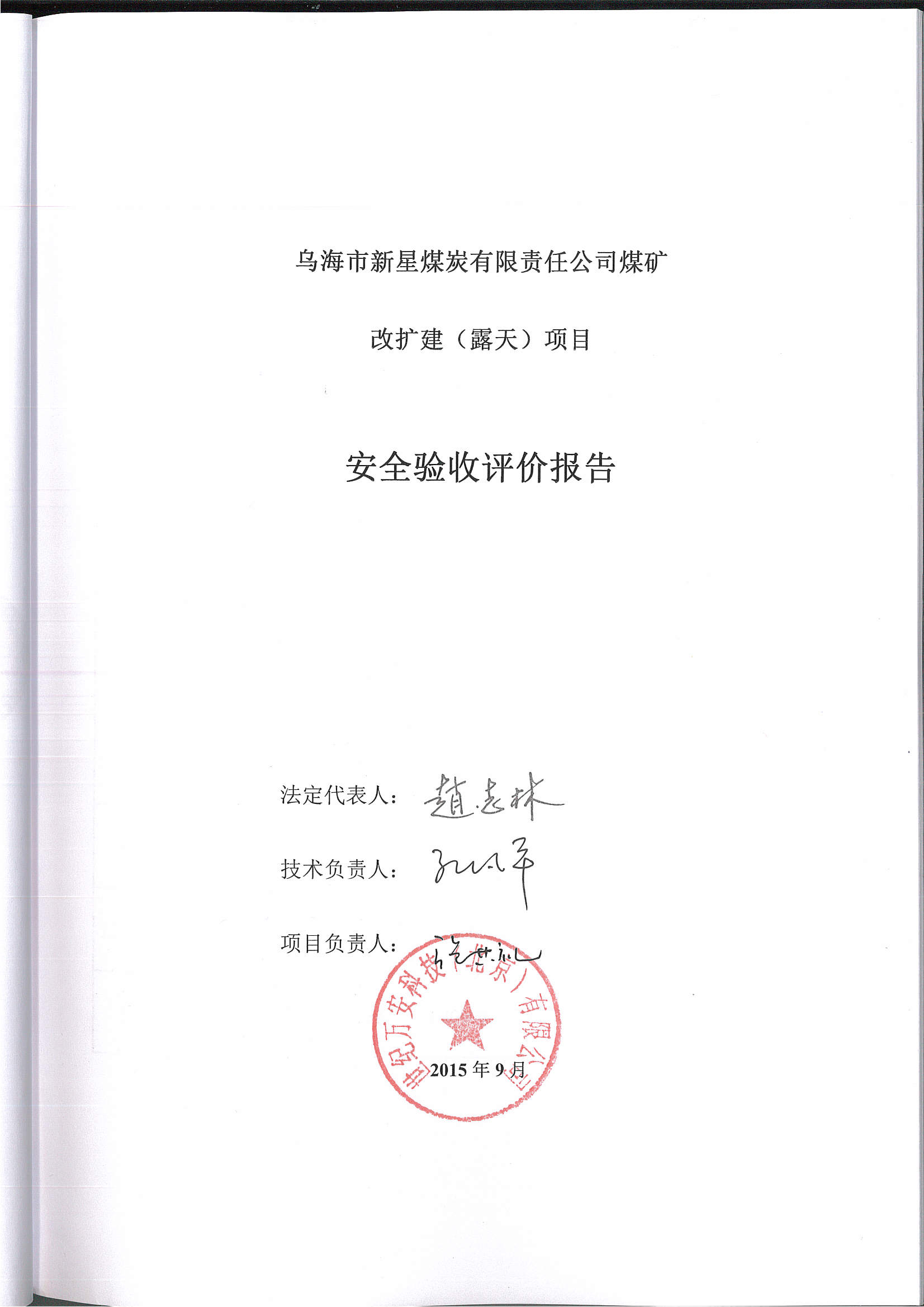 [2015年三季度]烏海市新星煤炭有限責(zé)任公司煤礦改擴(kuò)建(露天)項目安全驗收評價報告_頁面_1