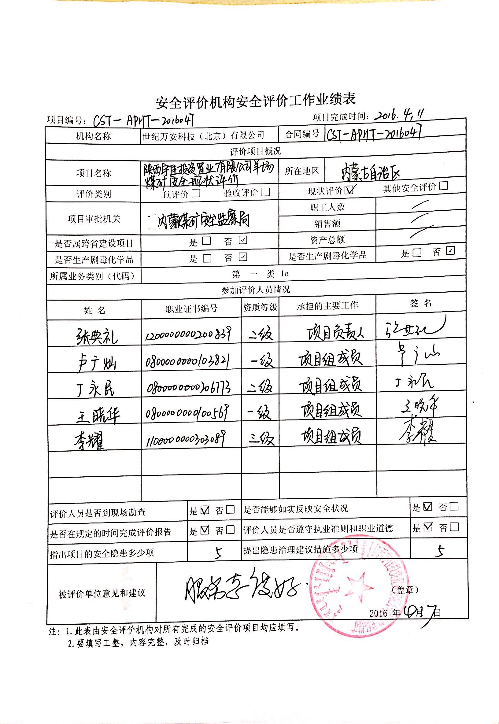 [2016年一季度]達拉特旗通瑞煤礦安全現(xiàn)狀評價報告_頁面_1